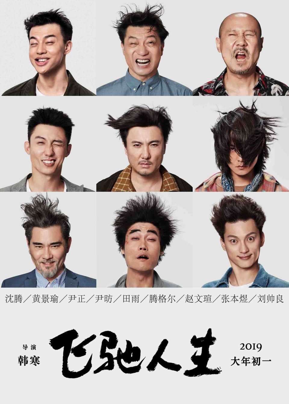 此次韩寒也终于“圆梦”,把《飞驰人生》打造成了一部纯讲赛车的热血电影。准确来讲,这是一部没有女主角的电影。官宣阵容时,沈腾、黄景瑜 、尹正 、尹昉、田雨、腾格尔、赵文瑄、张本煜、刘帅良九个人在强风的吹拂下,生动演绎什么叫“飞驰到变形”,清一色的男演员。