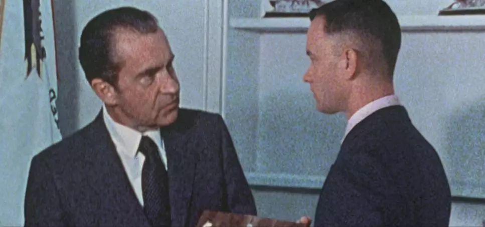最后再说,这部影片到底哪里不一样?其实阿甘正传整体情节相对还是比较朴实的,虽然通过非常巧妙的构思将各种历史事件串联到一起,还会引人发笑,但这并不是这部影片特别的原因。