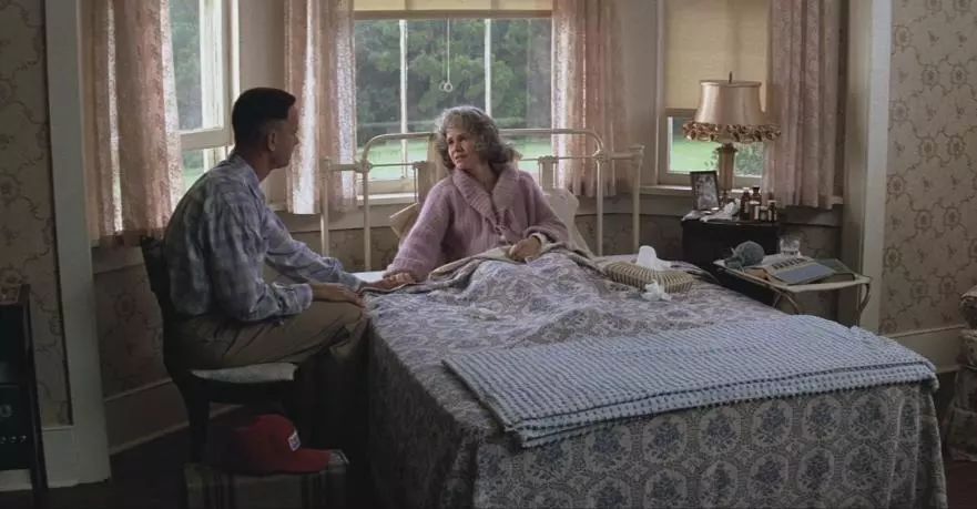 这一段阿甘和妈妈的对话不知道看哭了多少人,阿甘的妈妈在电影中绝对是神一样的存在,一个女人带个孩子,又是个低能儿,但她从来没有让阿甘失去过对生活的信心,她给了自己儿子所有她能给的一切,只为让阿甘成为一个优秀的人,可以说没有妈妈的付出,就根本不会有阿甘的一切。
