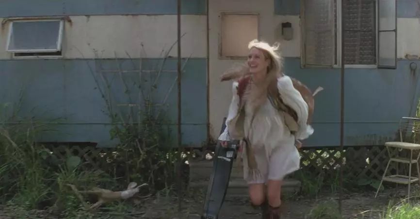 这边阿甘战场拼命,珍妮则背着吉他开始了自己的流浪生活,一个非常短暂的镜头,可以看到珍妮的笑容非常非常幸福,甚至在影片之前都没有出现过,可见,这个时候珍妮认为找到了自己。