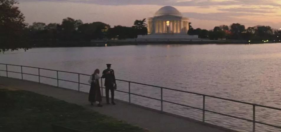 影片中水池对面的那个碑就是华盛顿纪念碑,这个纪念碑不仅可以看,还可以上,有电梯直达顶部,登顶之后可以俯瞰整个中心轴线。