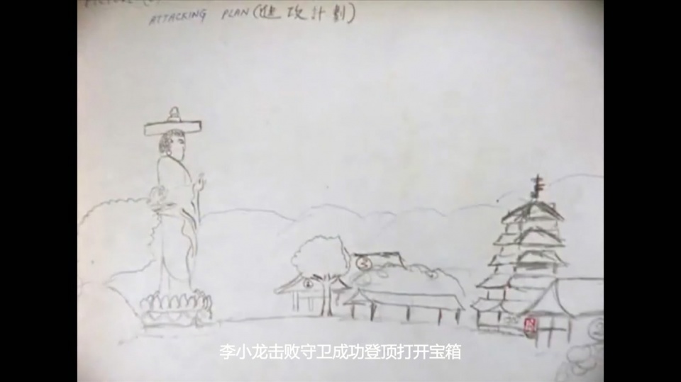 集团老板在一个高塔之上,层层有人手把守,电影从这个片段开始就是李小龙本尊在演了,