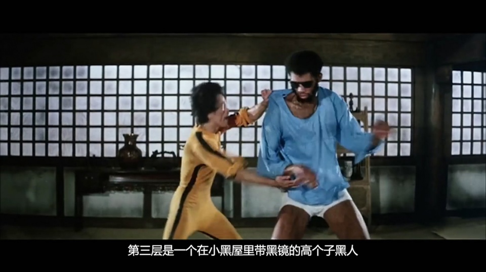 第三层是一个在小黑屋里带黑镜的高个子黑人,这人叫贾巴尔,是当时有名的NBA球星,结果被小个子比利锁喉至死。
