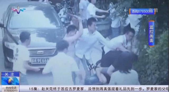 齐黄河带的差不多二十人在院子里,敲门之后,严峻出来开门,结果没说几句话,齐黄河就说了一句:“那就是没得谈娄?”随后挥了挥手,一群人带头开始对严峻和出来看看情况的陈传波动手,还有人说“打的就是你们雕龙画凤的!”于是,就这样从院子里一直簇拥着打到了外面,也是监控可以拍到的地方。更重要的是,从当地电视台《关注》报道的画面完全可以看得出,一群人大约七个围着穿着黑衣服的陈传波,一个光身大汉抡起榔头,对着陈传波就是咔咔一通乱锤。随后,出现的画面就是陈传波被打的满头血,挣扎着跑到严峻家里取出菜刀、水果刀和棒球棍,出来给了一个男子水果刀,另外一个微胖男子从他手里取过菜刀。其中,发刀给了一个男子又丢掉了,而陈传波在一女子马丽的阻挡下,并没有挥刀伤人、另外一个男子也未将任何人打伤。