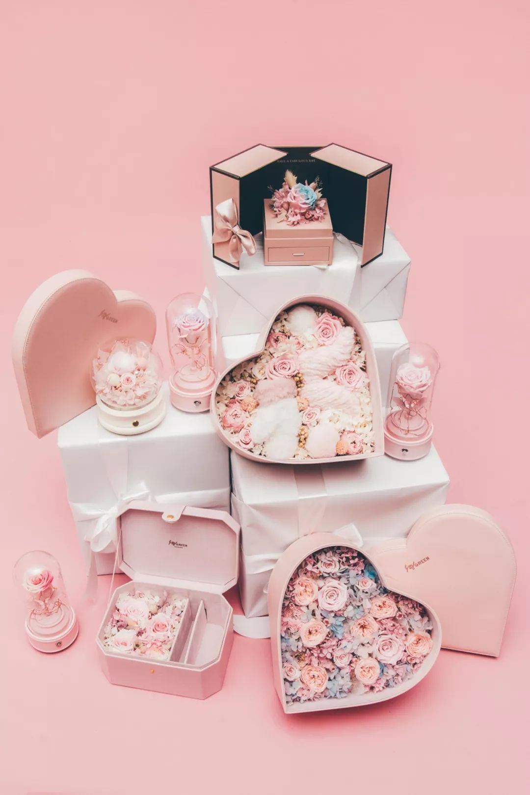 今年我们 YO!GREEN 为情人节推出了一系列限定花盒、玫瑰玻璃罩、永生花玻璃球等周边产品,或许可以成为你的送花选项之一。猪猪女孩们想要的粉色“桃花运”,以及大受欢迎的“真爱”系列,在 YO!GREEN 这里都能统统实现!