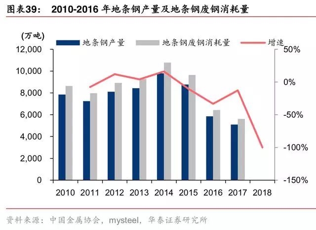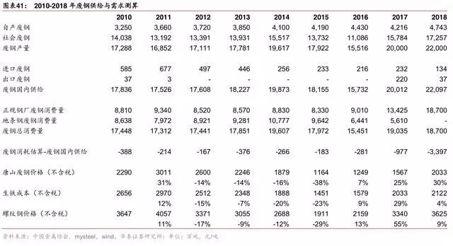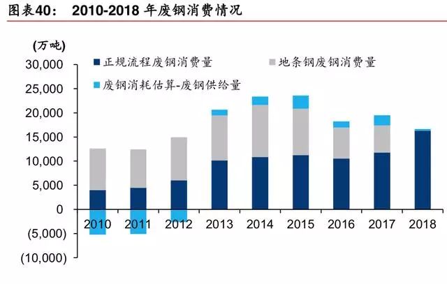 我们大致梳理了 2010-2018 年废钢的表观需求及消费量,但由于废钢回收及流转过程分散且不规范,废钢产量、消费数据存在不准确等诸多问题。