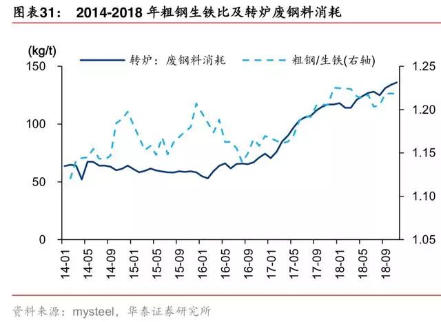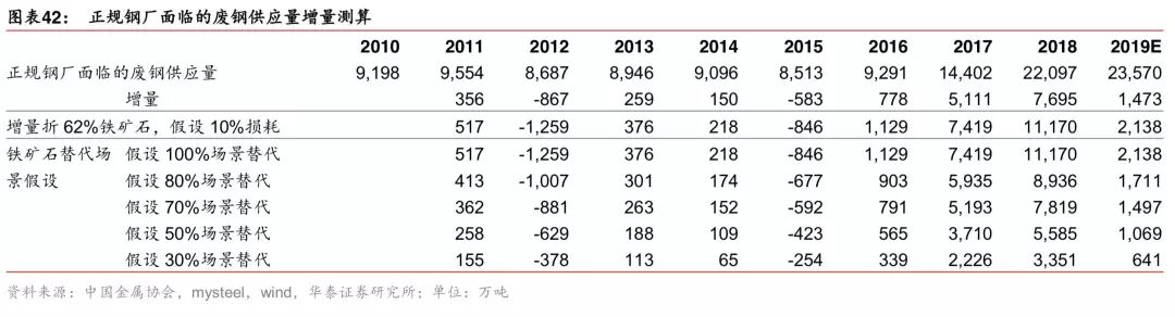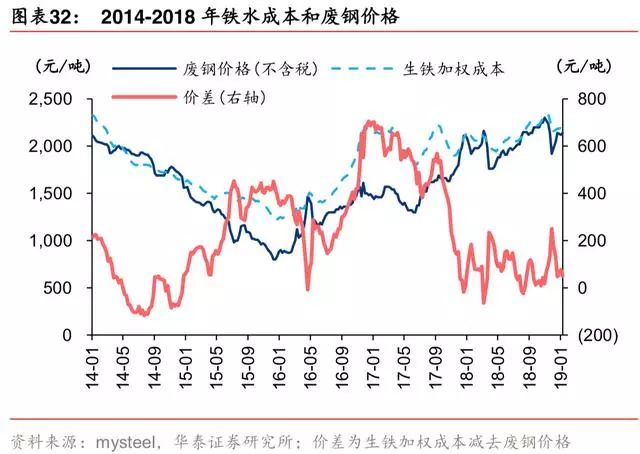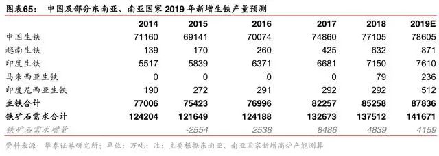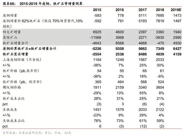 但进入 2019 年后,中国钢厂面临的废钢供给增量下行——不再有地条钢占用的废钢资源 回流,仅有废钢产量的自然增长,废钢进口也将受到严格管制。且,环保限产放松,更具 备成本优势的长流程将对短流程进行替代,2019 年预测中国生铁产量增加1500万吨,提 升对铁矿石需求。