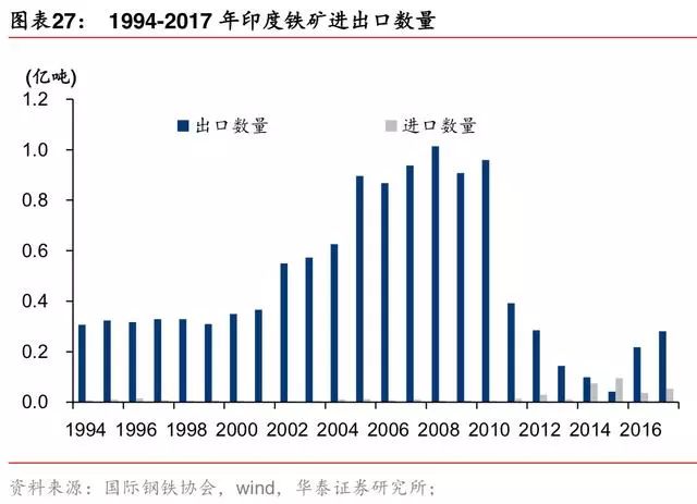 2018年,印度果阿邦政府下令在 3 月 15 日以后禁止采矿活动,取消了果阿邦 88 个采矿 租约,果阿邦是印度的主要铁矿石产区,印度 2018 年铁矿产量下行。从目前已知的信息 看,开采禁令尚未有取消的迹象。