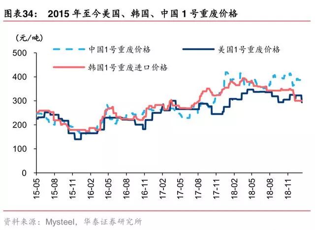 Mysteel预计 2019 年国内废钢产量增长 1500 万吨。近年来,国内外废钢价差较小,年 进出口规模较小,我们预测 2018 年废钢年进口、出口分别为 130、37 万吨。2018 年 12 月,生态环境部等联合印发调整进口废物管理目录的《公告》(2018 年第68号),将废钢 铁等 8个品种固体废物从《非限制进口类可用作原料的固体废物目录》调入《限制进口类 可用作原料的固体废物目录》,自 2019 年7月 1 日起执行,或将继续压制废钢进口。