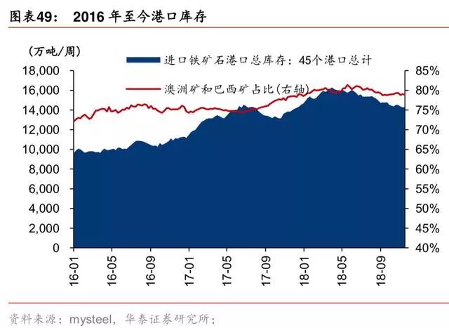2018 年,港口铁矿库存长时间下行