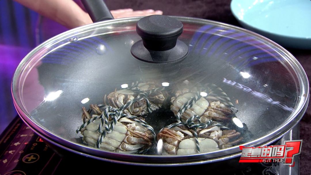 将25毫升冷水倒入锅里,再把螃蟹肚皮朝上放入锅中,这样能防止蟹黄流出,然后盖上锅盖放在电磁炉上。
