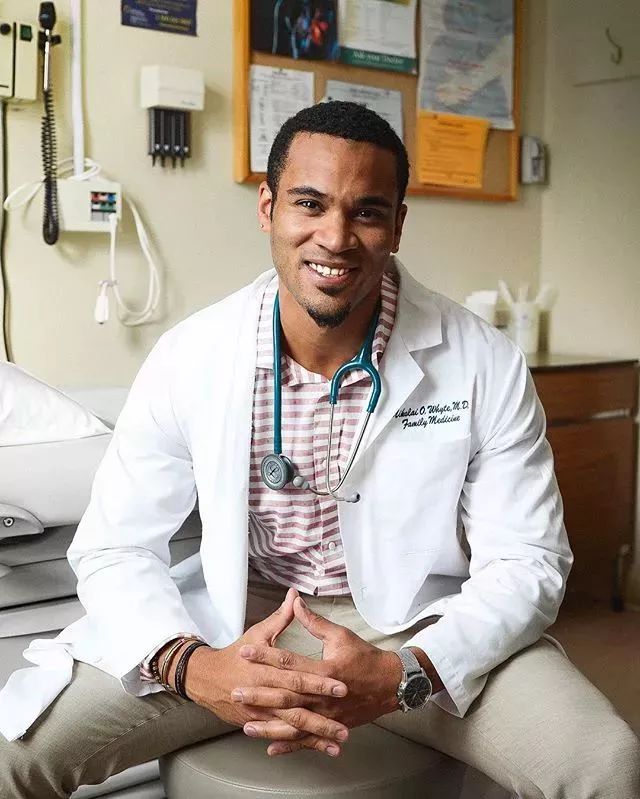 德国汉堡的医学美容科的黑人医生Nik Whyte,身材也是媲美肌肉男模,穿着宽松的白大褂可能看不太出来。