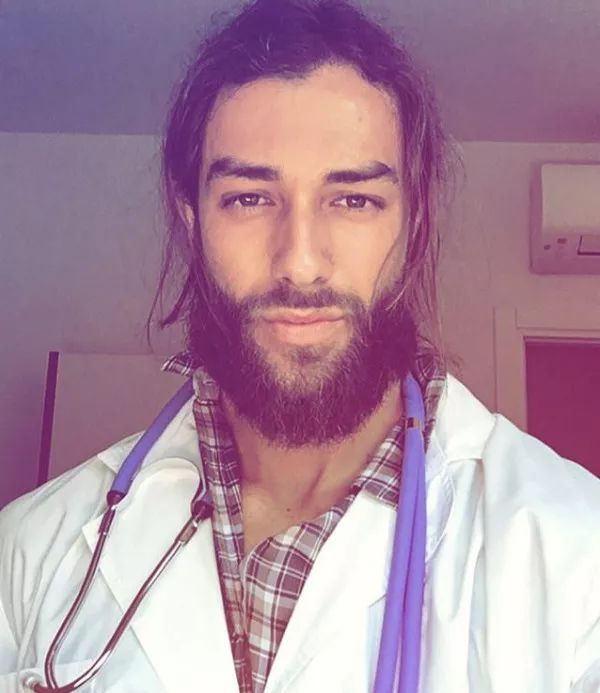 穿上白大褂的他,好像一下子掩盖起自己粗狂的气质,变得温文尔雅起来,看你的眼神都带着温柔,虽然络腮胡和长卷发还在,但与“海王”的联系好像弱了一些。