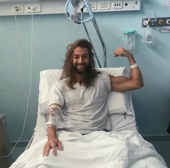 当然,铁人也会有生病的时候,但即使生病住院也要拍个照秀一秀自己的肌肉,好像再告诉大家:我很快就好啦~毕竟我这么强壮~
