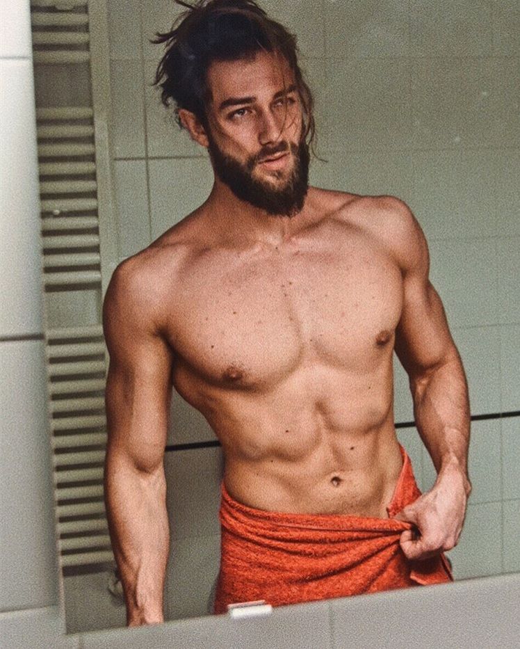 但最惹人眼球的还是裸上身,肌肉大喇喇的充斥眼球,荷尔蒙散发到可以溢出屏幕。