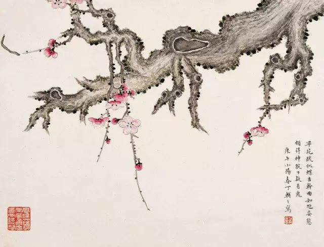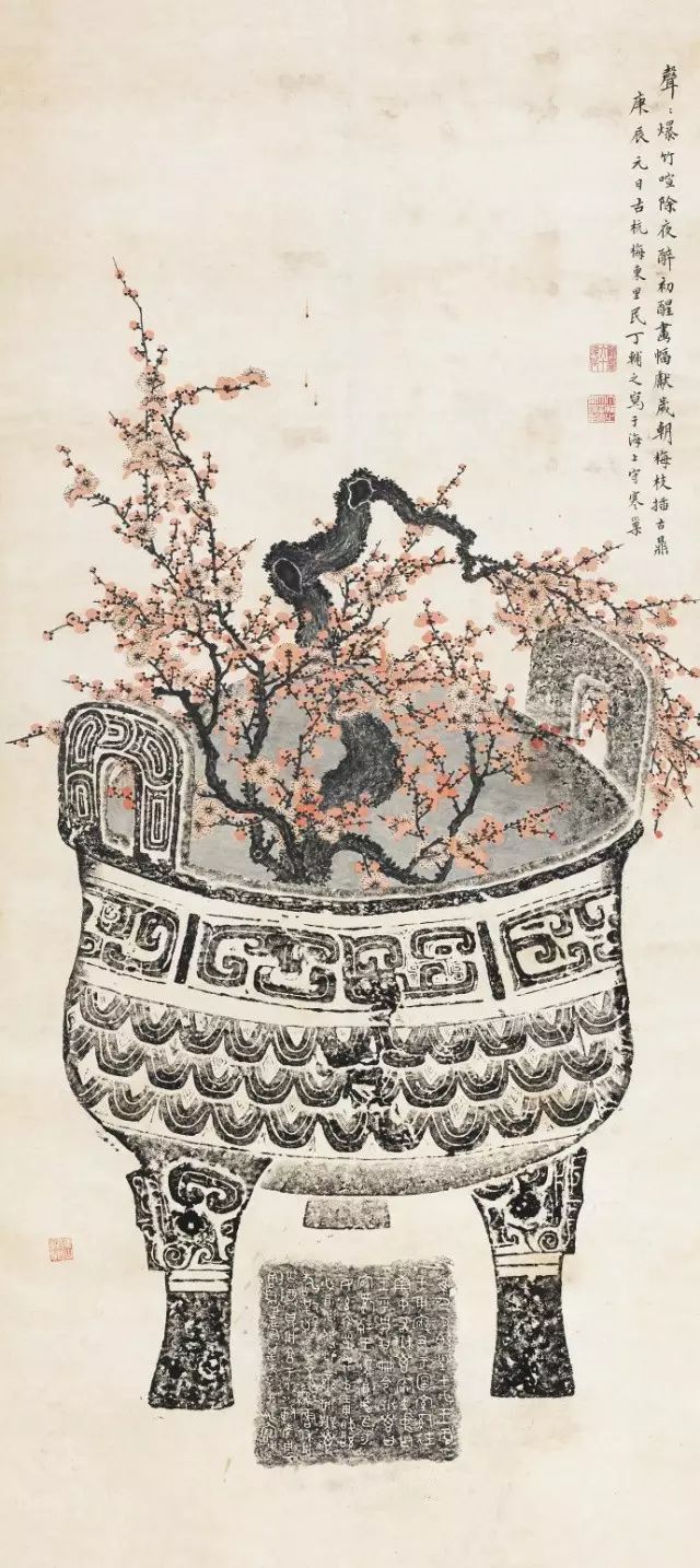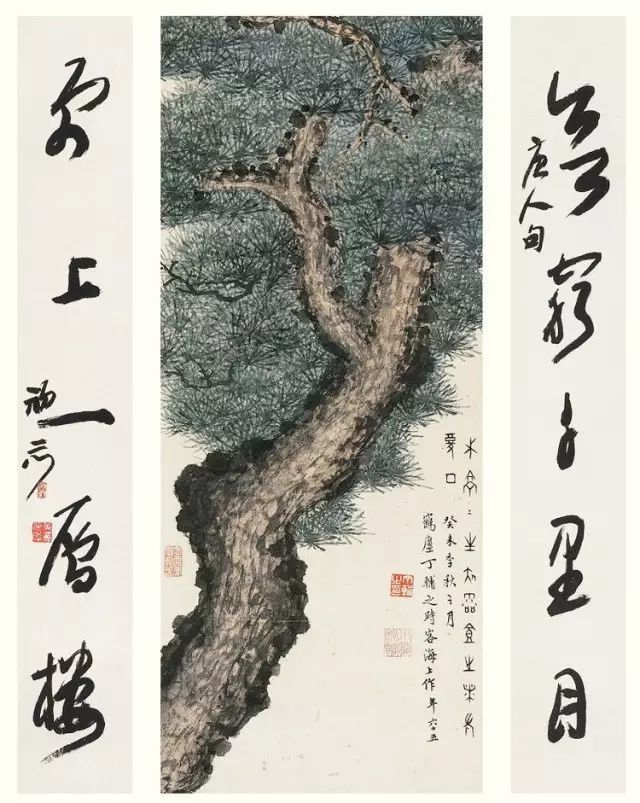 丁辅之常以苍松、红梅入画,古松图上留有闲章“天下几人画古松”,自矜如是,诙谐没有一点不谦虚。