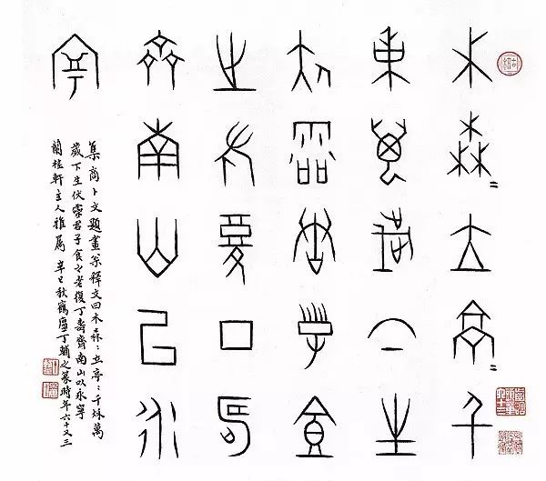书法擅长楷书、行书、篆书,尤精于甲骨篆文,结字停匀,虽瘦而有劲力,变恣意天然的古朴卜文书风为整齐工丽且带有装饰效果,颇具整体感。尤需指出的是,他的绘画作品常常配上甲骨文题跋,别具一格,并成为丁氏特有的标志和符号。