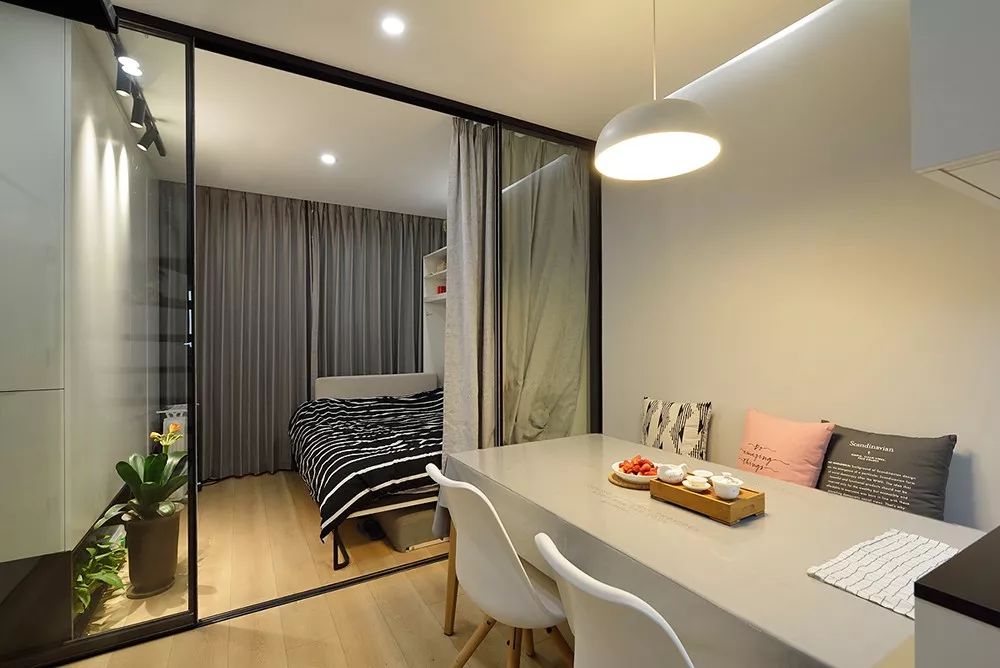 将原客厅用玻璃移门一分为二