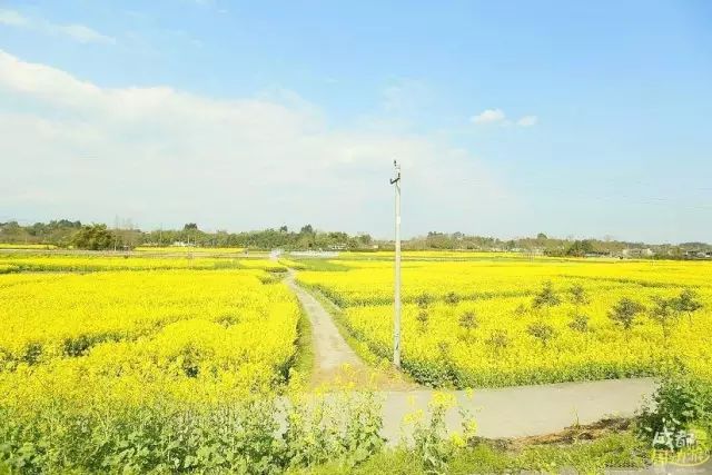 每年春天,这儿应该是成都油菜花最早开的地方。阳光灿烂、伴着微风,走在乡间的小路上,回眸一笑百媚生,花美人也美。