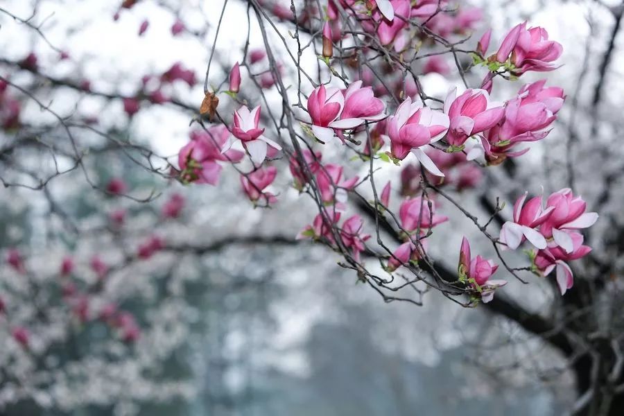 每年6月成蕾,直到次年的3月才开遍谷中,花期相当短。九皇山的辛夷花,历经十冬腊月,只为给你短暂的刹那芳华。