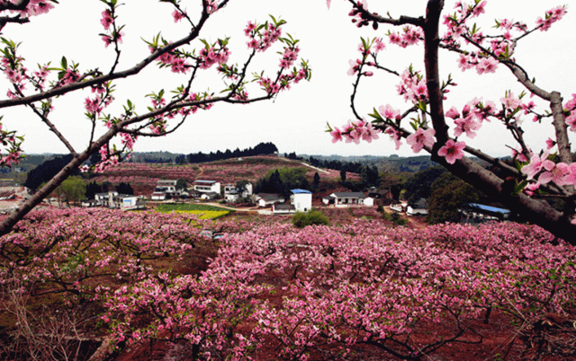 当青白江樱花盛开的时候,蒲江光明乡的万亩樱(恩)桃花也竞相开放了。
