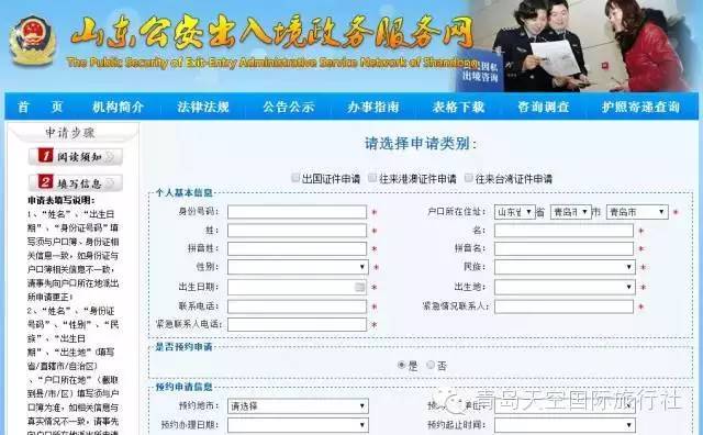 网上预约流程▽登陆山东公安出入境政务服务网http://www.sdcrj.com/wwwroot/sdsgatcrjzwfww/index.shtml