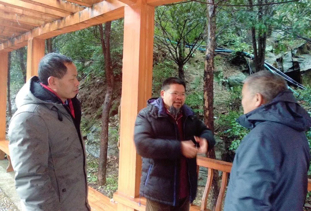 春雨霏霏,欲晴还羞。参加泛谈的李都玉、曹文、何勇诸先生,借着料峭春寒赏樱花,游步道,观山景,在郴州八景之一的王仙岭瀑布处察看“王仙岭仙人桥”项目选址地点。察看时间不长,行程虽短,天气寒冷,但大家感受春意已盎然,王仙岭旅游发展满是希望。