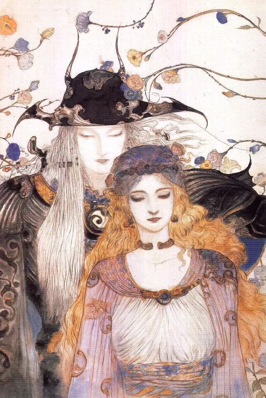 以上都是日本画家天野喜孝(Yoshitaka Amano)的作品,喜爱漫画插画的朋友们一定对他的名字有所耳闻,他最著名的《最终幻想》系列,曾经影响了八九十年代一批的年轻人。