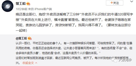 类似的例子我以前也举过很多:在生产中很多人对于同事就知道个微信昵称,连真实姓名都不知道;在消费中,与服务员、外卖员、快递员等,非但不会产生共同体共情,而更多的都是对立情绪;在生活中,很多群租房的年轻人之间毫无交流,共住一个屋檐之下仅仅是公用洗手间和厨房的关系,微信群里唯一说话的时候就是要分摊水电费了——先发生了金钱的关系,才有了人与人的联结。