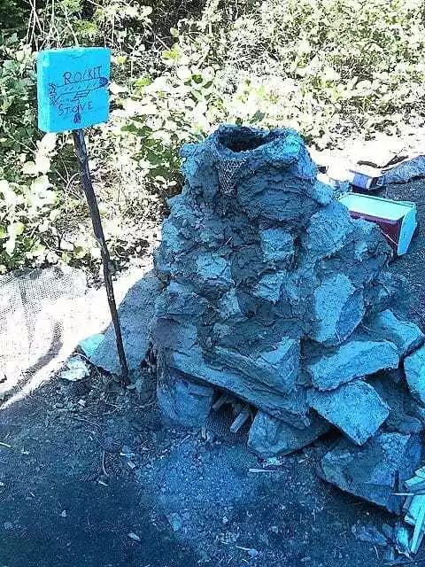 没有粘土,只需用泥土和岩石来建造你的火箭炉。它看起来很原始,但效果很好。