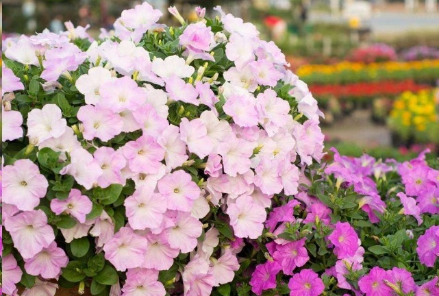 矮牵牛十分容易暴盆,秋天播种的矮牵牛正常浇水施肥晒太阳,春天就可以自然暴盆。春天的矮牵牛则需要通过打顶,促进分枝才能使矮牵牛的株型饱满,达到暴盆效果。