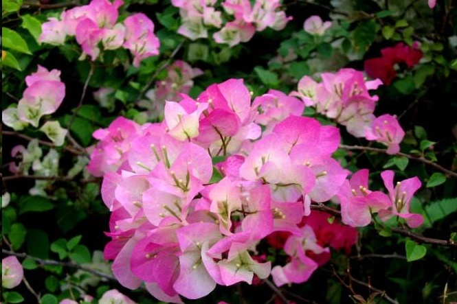 三角梅具有攀援的特性,盆栽时应注意及时修剪,对新生枝要及时打顶,过长的枝条要及时截短保持造型,平时不必过多施肥,可在出现花苞后再追施磷酸二氢钾肥,或花多多2号肥。