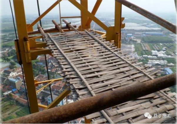3)标准节与楼层的过人通道必须牢固安全。两侧防护栏杆不得低于1.2m,并加设脚手板或密目网围护。