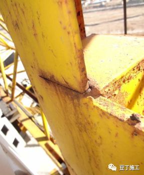如此裂纹的塔机还在使用中,说明出现初始裂纹到扩展到近一半,尚有较长一段时间,只要平时认真检查,因裂纹原因倒塔完全可以避免。