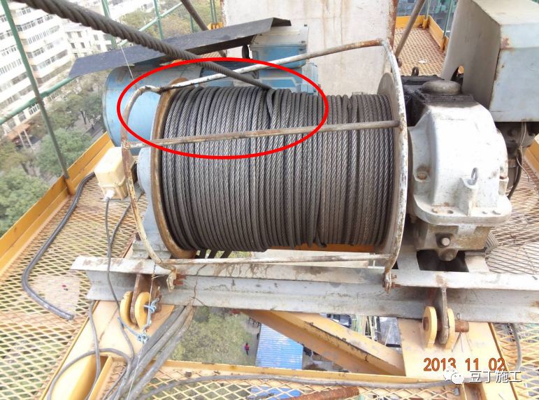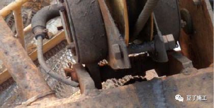 错误图例:钢丝绳逃出,防脱槽装置无作用