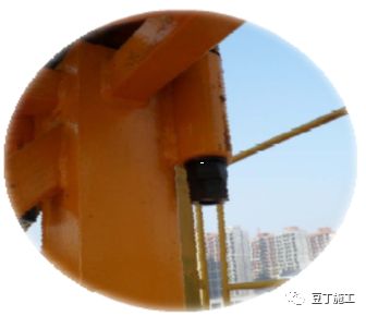 小车变幅塔机应设置小车防坠落装置,即使小车车轮失效小车也不得脱离臂架坠落。其结构原理是,在小车上焊接4个悬挂装置,小车正常运行时,这4个悬挂装置位于起重臂轨道的上方,当小车轮轴折断时,悬挂装置搁置在起重臂轨道上,使小车不致坠落。
