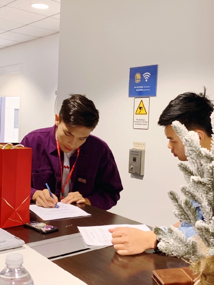 巴恩泽在微博上配了一张照片,他正在认真地在一张纸上写着什么,一旁还有一位中国人面孔的同伴,两人可能正在讨论学业。身穿紫色外套的巴恩泽低着头非常认真,但是依旧这挡不住他的英俊帅气。巴恩泽还配上了一句话:“认真学习中”。