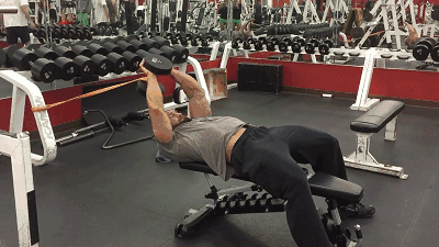 仰卧上拉,Arthur Jones认为这个动作就是上肢肌群中的深蹲,因为他可以强化背部整体中各种薄弱环节,实际这个动作已经非常少见了。