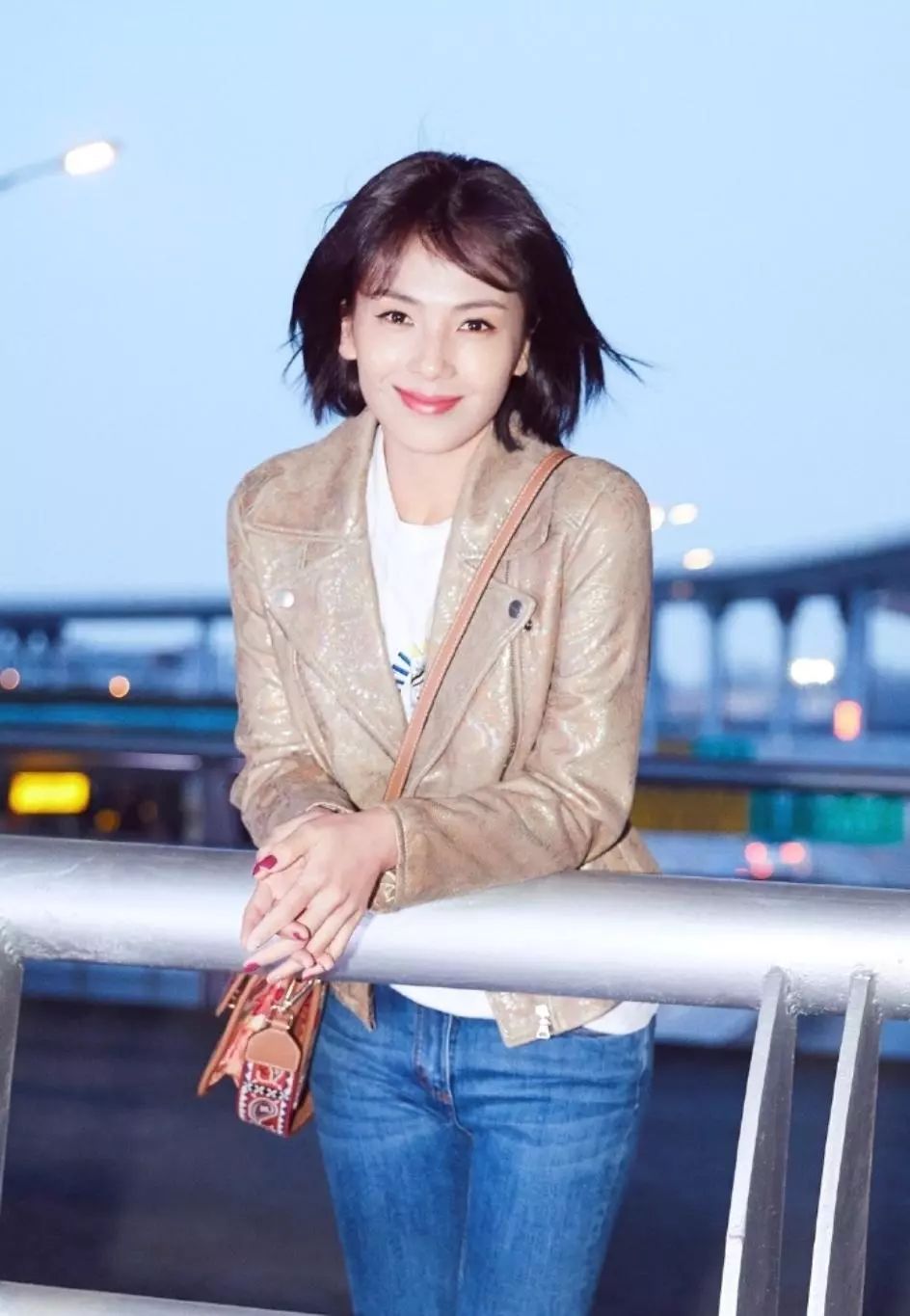 被她的“初恋头”美到了,齐颈短发配上空气刘海,俏皮灵动,身穿一袭卡其色小皮衣搭配白色T恤和牛仔裤,简单大气,率性自然,民族风包包为整体造型增添几分别样风情,笑容明媚,感染力十足,状态极佳,少女感爆棚。