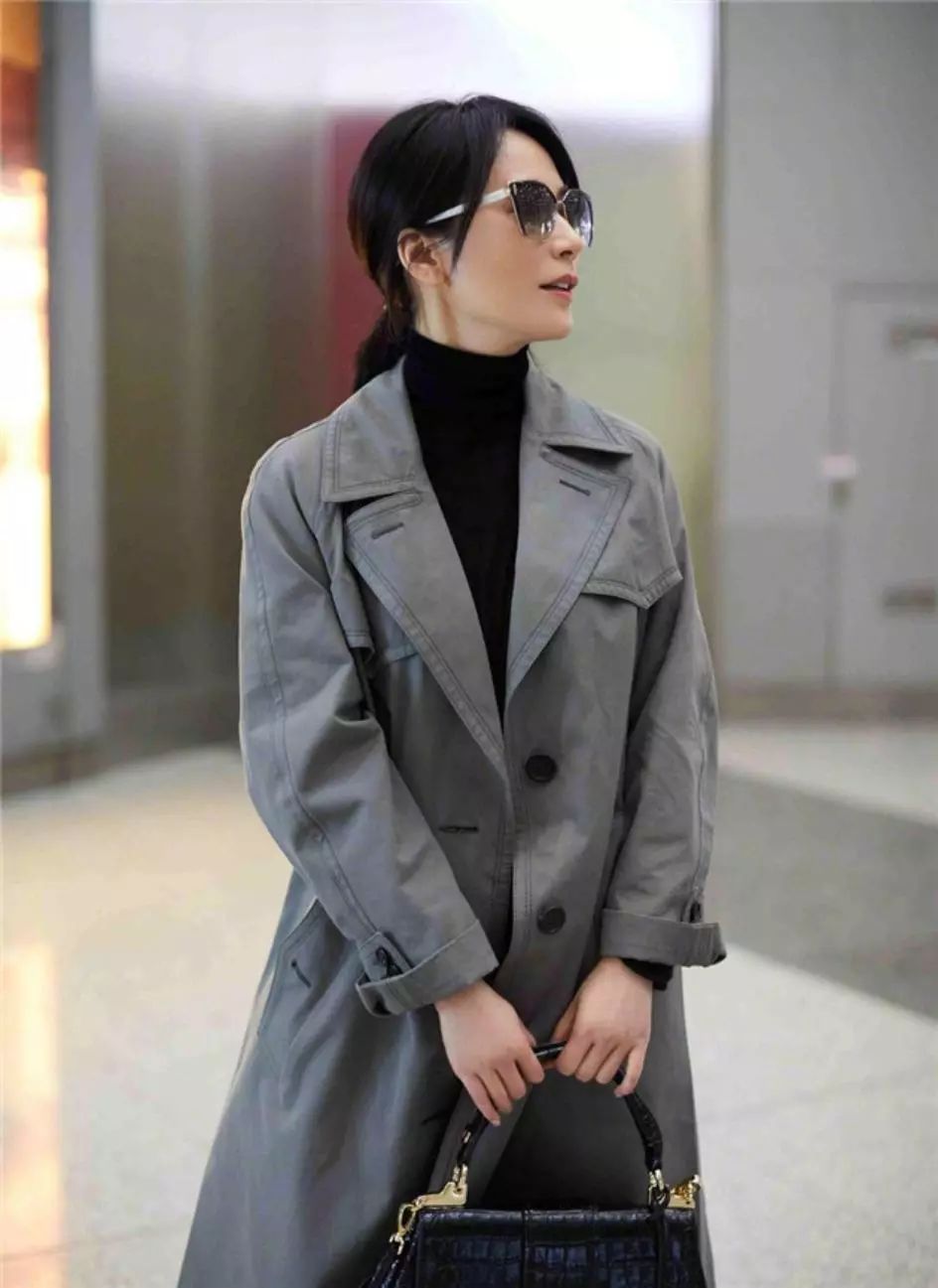 同是被时间遗忘的女神,俞飞鸿越大越有韵味,她的穿衣风格依然简约大气,一袭灰色风衣内搭黑色高领针织衫,低调从容,优雅与率性兼具,散发着成熟女人魅力,墨镜为点缀酷帅气场足,气质高级,甚是迷人。