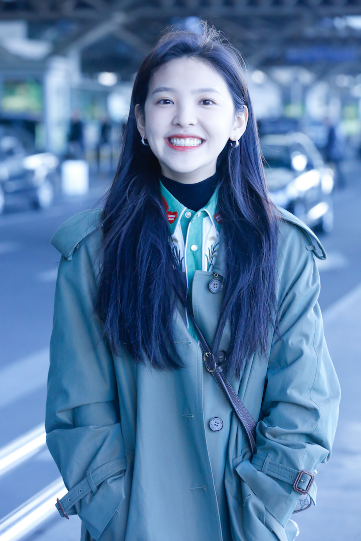 原标题:笑得太甜了 演员章若楠一身军绿风衣活力现身机场