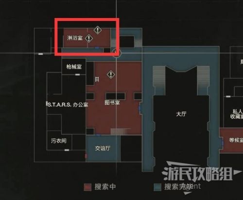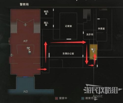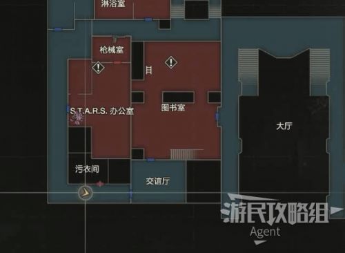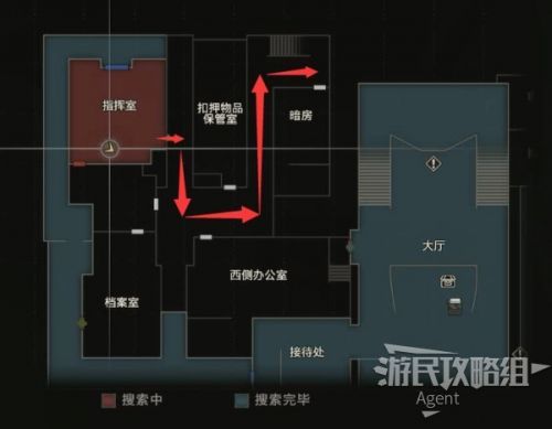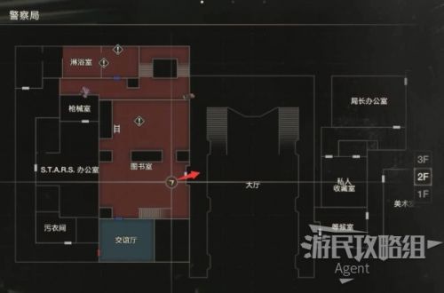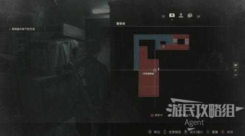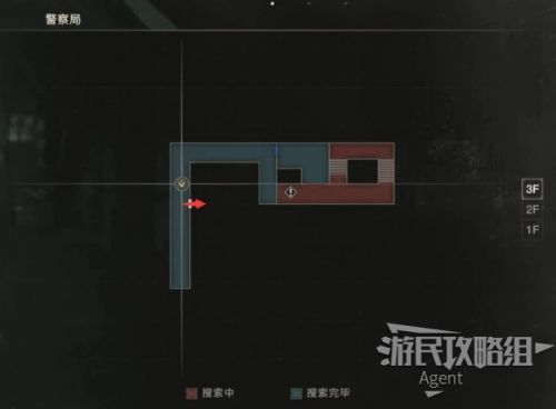 未探索的区域都在地图上可以看到了,下一步目标是抵达楼梯口上楼。我们先探索扣押物品保管室、西侧办公室、暗房,最后再上楼。