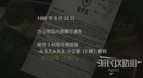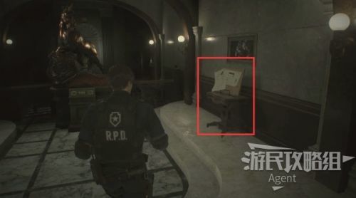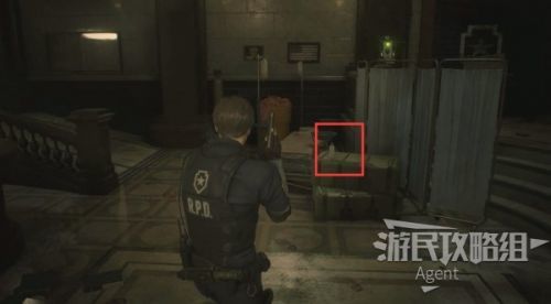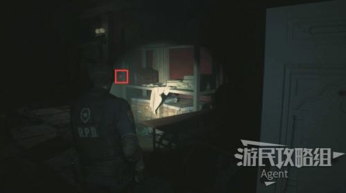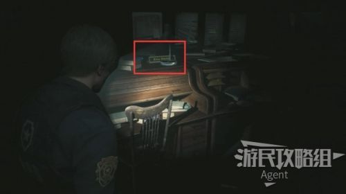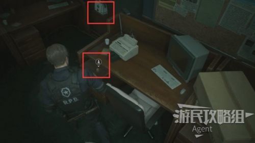 进入警局内部,面前的桌上有一盒手枪弹药,旁边的打字机是存档点。再往前有一个笔记本电脑,旁边的大箱子是异次元储物箱,暂时不用的道具可以临时寄存在这里,在游戏中的任意一个异次元储物箱,都可以取出之前放进去的道具。