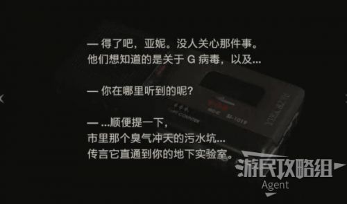 门打开,进去拿钥匙卡,同时获得 采访文字稿 。这里本采访的亚妮,就是威廉(G病毒研发者)的妻子。