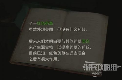 绿色药草可以回血,蓝色药草解毒,红色药草可以加强其它药草的疗效。