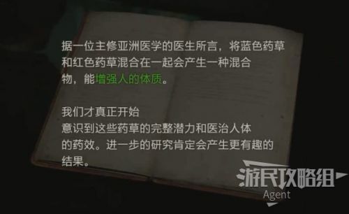 屋内有红色药草和胶卷。