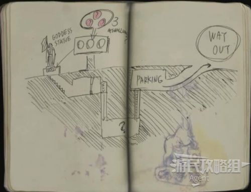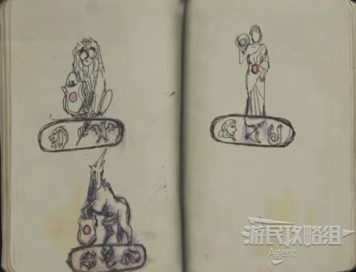 可惜还是没能拯救他(画面太血腥小孩子不要看),从他手中获得笔记本。看图可知,拿到三个圆形徽章,放到女神像的底座上,就可打开离开这里的地下通道。
