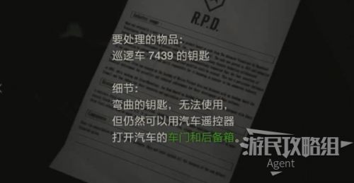 物品栏里调查黄色盒子,获得巡逻车7439的破旧钥匙。