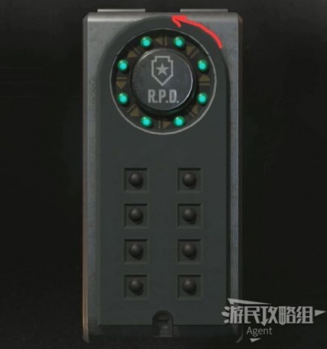 打开物品栏调查便携式保险箱。需按照逆时针方向依次点亮8个灯,从哪个灯开始都行。