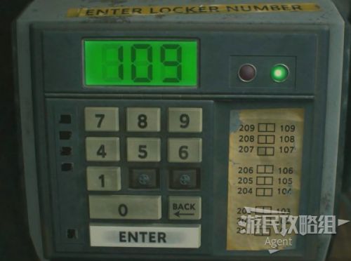 终端机小键盘按键缺了2和3,目前只能打开1开头的(等拿到备用按键后还要再回来),分别输入106、109,然后点ENTER,可打开这两个储物柜。